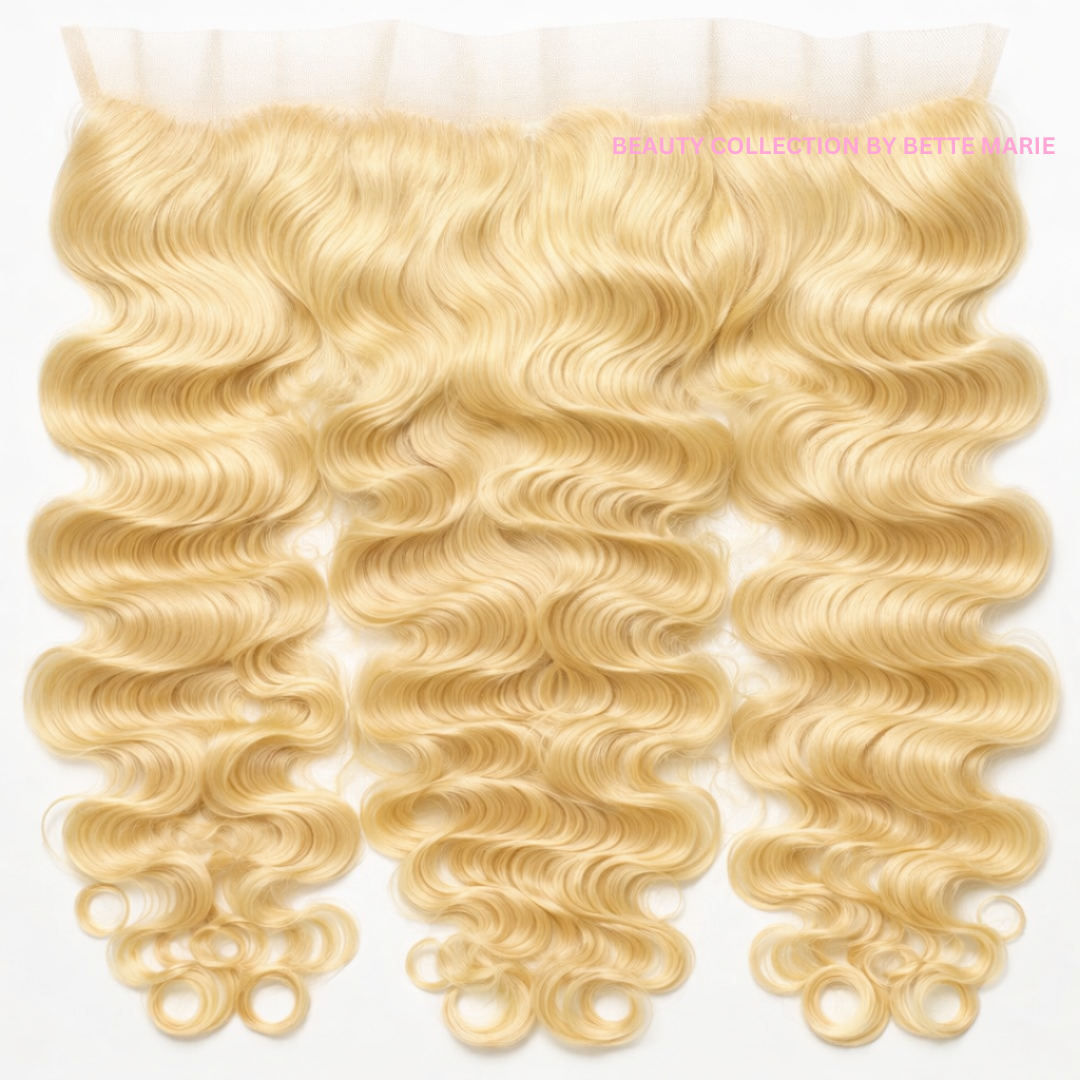 • Premium 11A virgin hair, ethically sourced and professionally lifted to 613 blonde